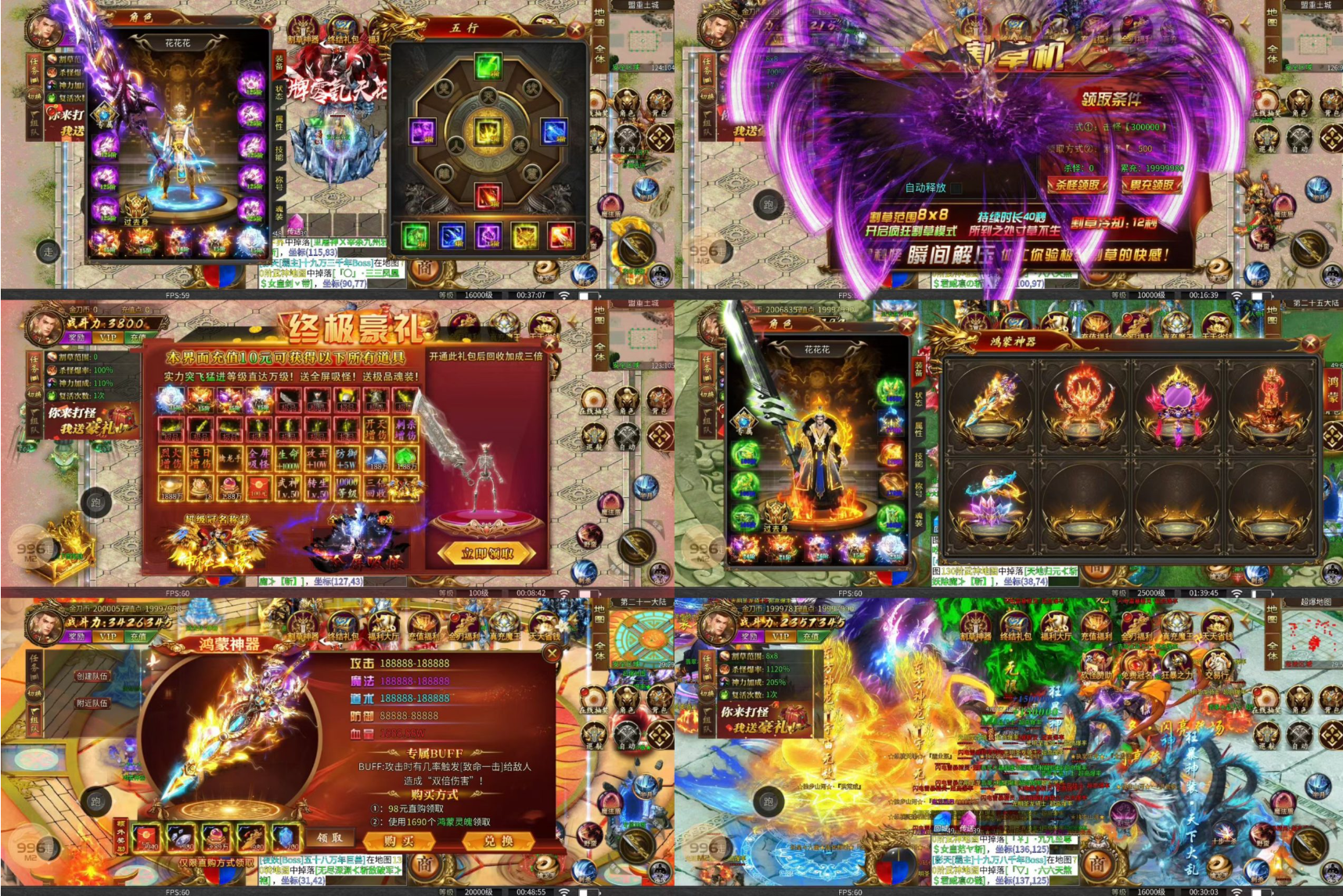 砍草技能满屏秒怪,满屏光柱。